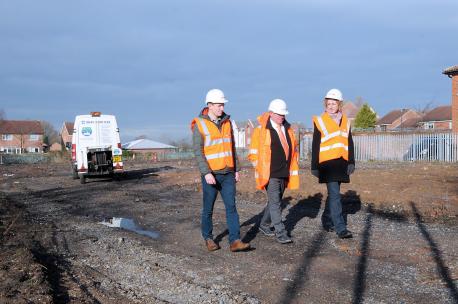 Building work under way at the site of former Beckfield Lane tip. Coun Tracey Simpson-Laing with City of York Council housing development manager Michael Jones, left, and project manager Stewart Sadler at the site of the former tip in Beckfield Lane. WORK has started building new homes on the site of the former Beckfield Lane tip in Acomb, York.